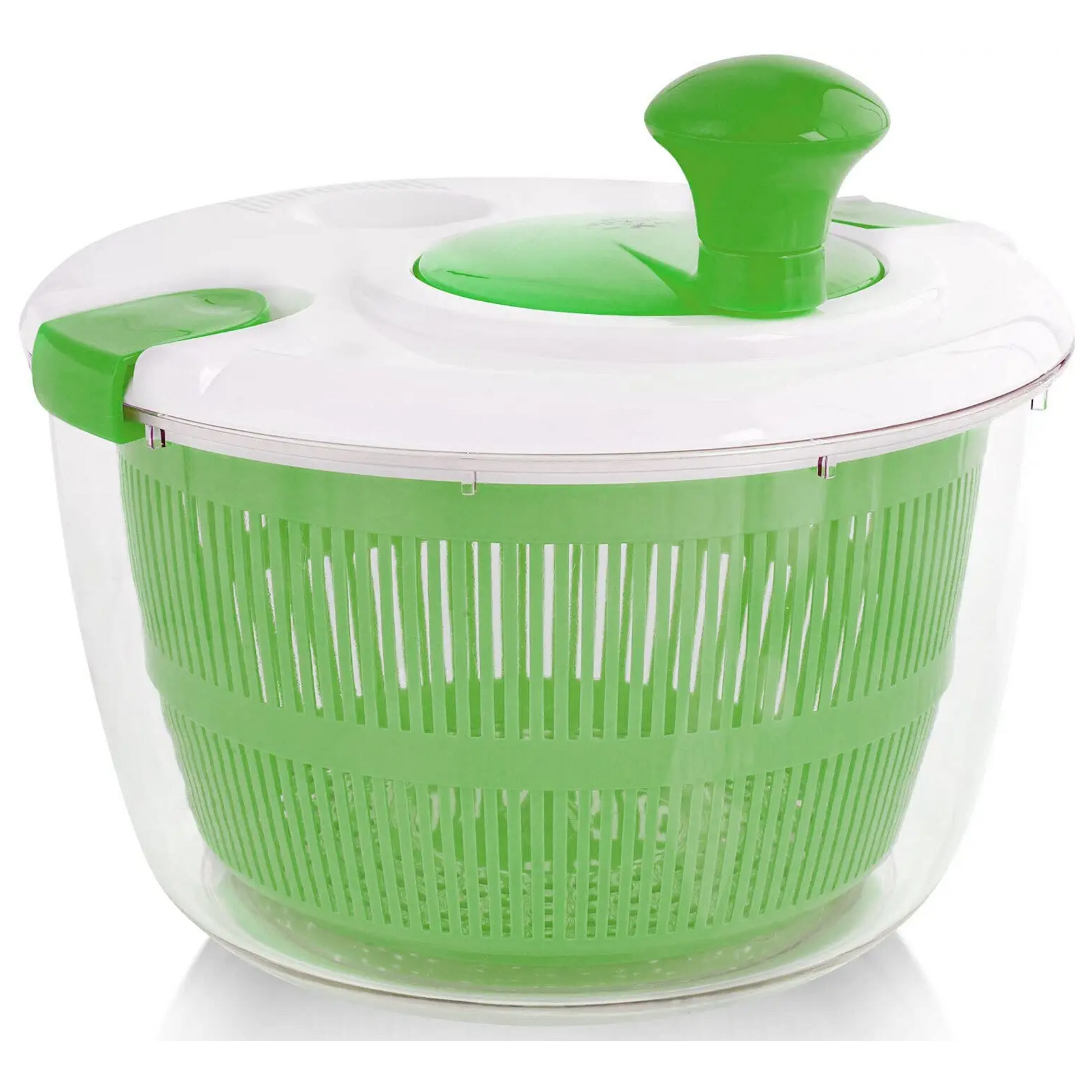 Our salad spinner is the perfect solution for keeping your greens crisp and delicious! Other salad spinners are hard to use and the lid needs to be removed while spinning but not this one! Its built-in drainage system allows you to pour or extract water without removing the lid. Spinning, tossing & serving salad is now easier! Its crank-style rotary handle is comfortable to grasp, making it easy to spin the basket to full speed with just a couple of turns. The 2 built-in lid locks are secure so there's no need to worry about all the contents pouring out when spinning away.